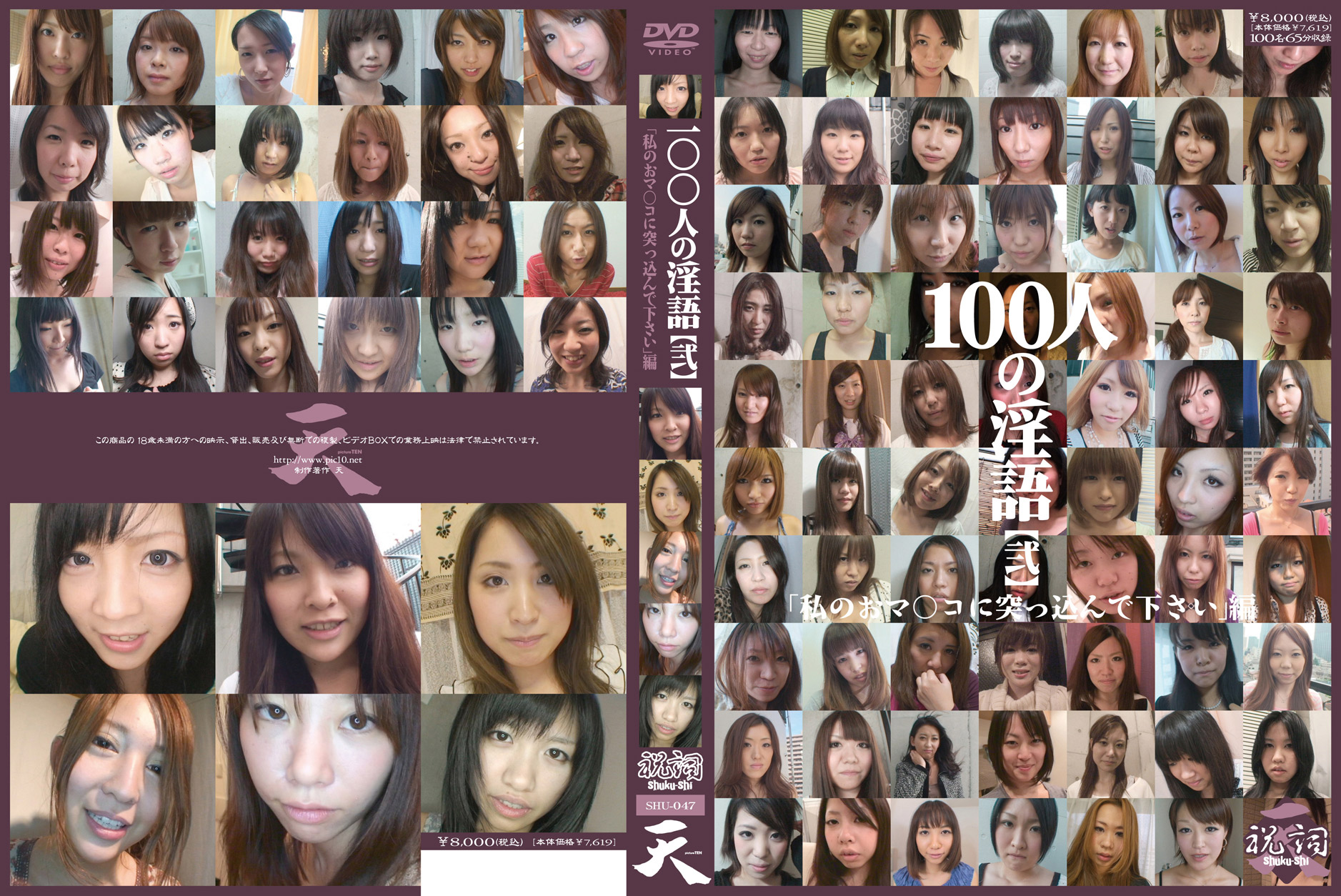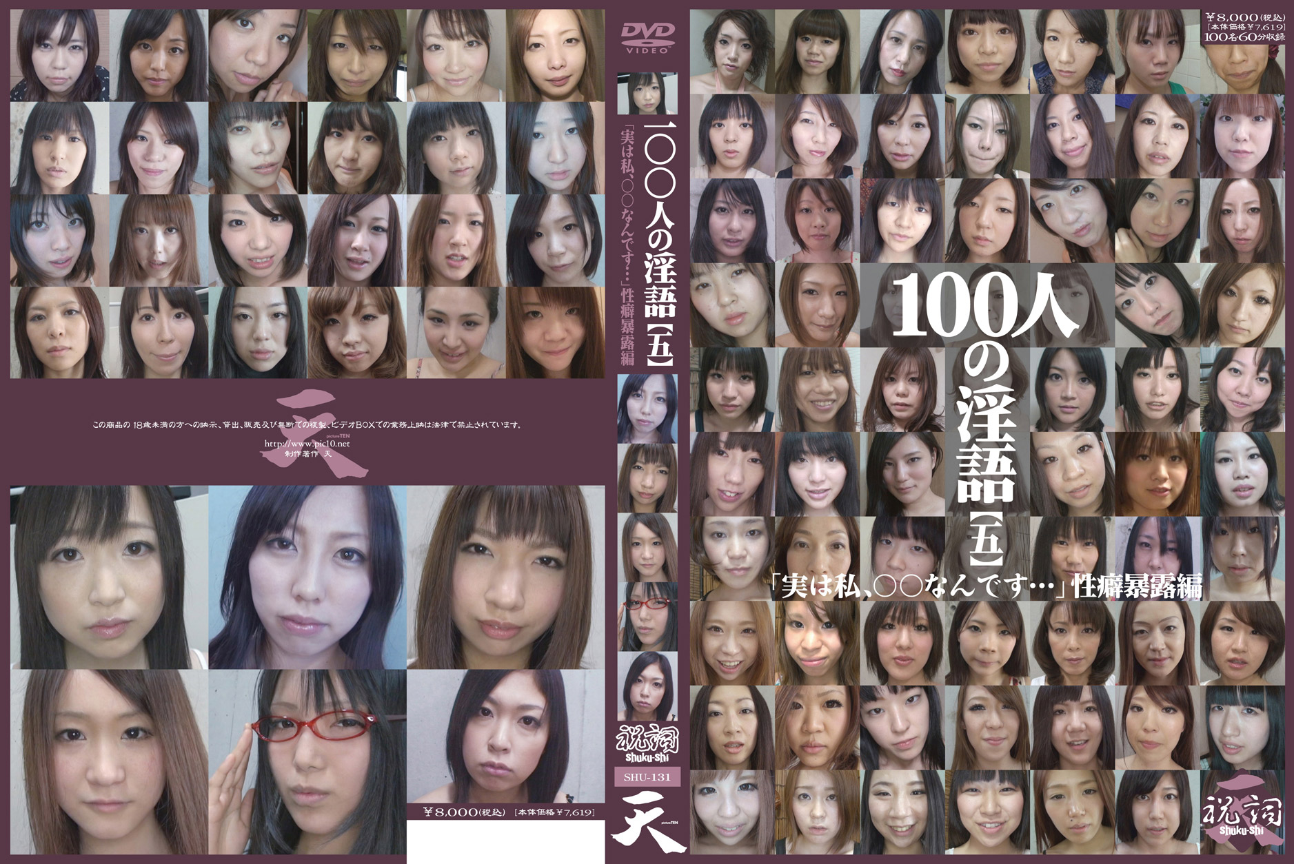 「私の…いやらしいお尻の穴に…興味ある?ぐちょぐちょのおマ○コも…良く締まるお尻の穴も…アナタの好きに使って下さい…」女たちは恥じらいながらもケツ穴を広げて男を誘う…。100人の女性たちが次々に登場し尻穴を見せつけながら淫らな言葉を言い放つ―。千差万別、百人十色の穴模様!様々な年齢、職業の女性100人分を収録。 |