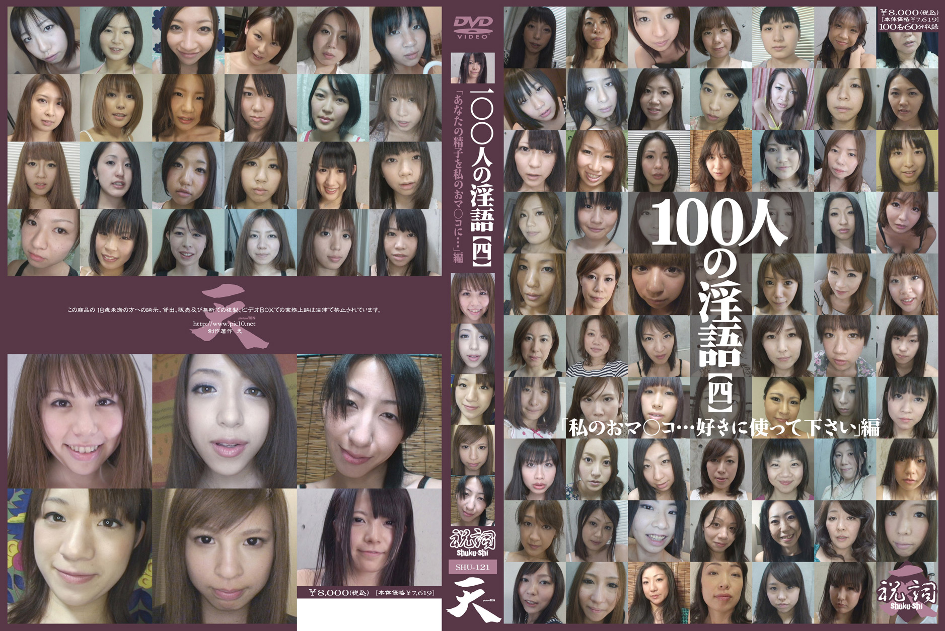 「私の…いやらしいお尻の穴に…興味ある?ぐちょぐちょのおマ○コも…良く締まるお尻の穴も…アナタの好きに使って下さい…」女たちは恥じらいながらもケツ穴を広げて男を誘う…。100人の女性たちが次々に登場し尻穴を見せつけながら淫らな言葉を言い放つ―。千差万別、百人十色の穴模様!様々な年齢、職業の女性100人分を収録。 |